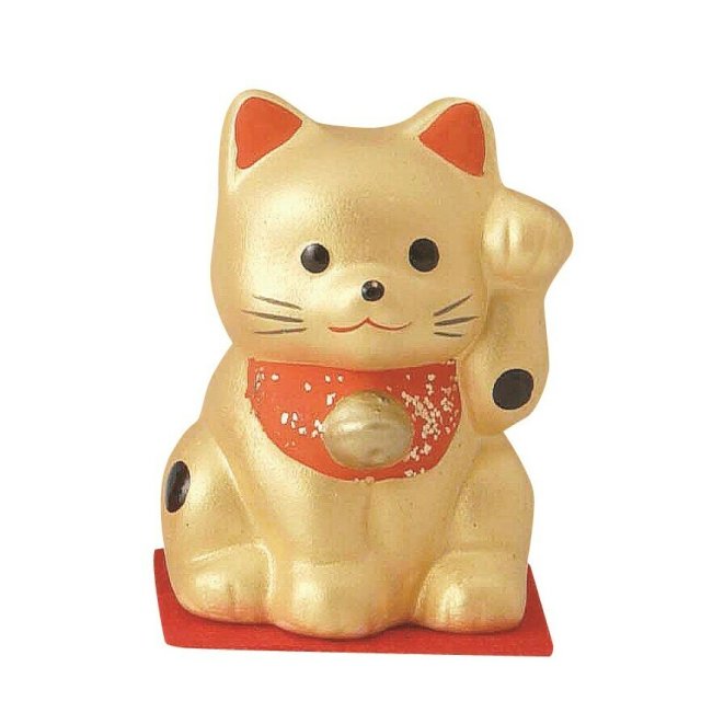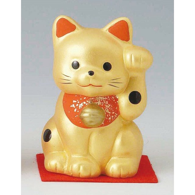 日式陶瓷幸福を招福猫 (小)(金色) (日本製)