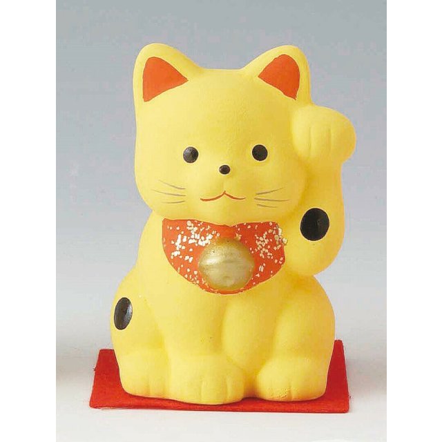日式陶瓷幸福を招福猫 (大)(黃色) (日本製)