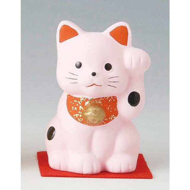 日式陶瓷幸福を招福猫 (大)(粉紅) (日本製)