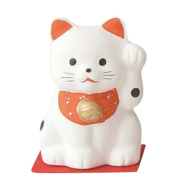 日式陶瓷幸福を招福猫 (大)(白色) (日本製)