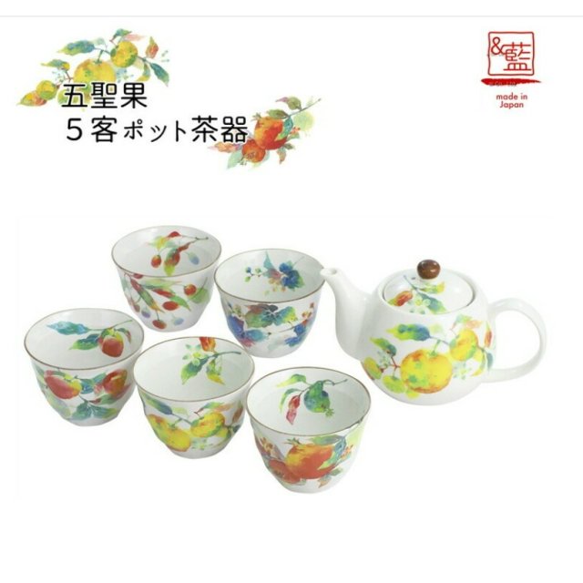 日本美濃燒茶壺套裝(五聖果)(5件套) (日本製)