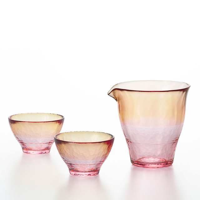 日本津輕漸變色清酒杯酒壺套裝(粉紅) (日本製)