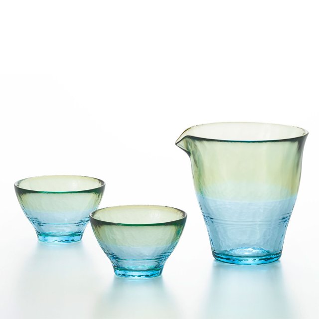日本津輕漸變色清酒杯酒壺套裝(粉藍) (日本製)