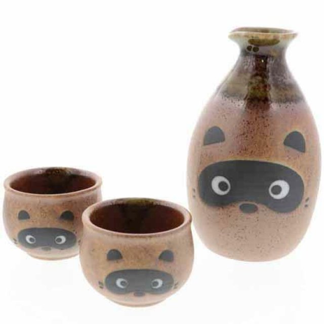 日式陶瓷浣熊清酒壺套裝 (日本製)