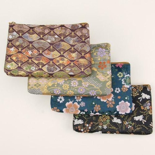 日式花卉金襴通帳拉鏈袋 (日本製)