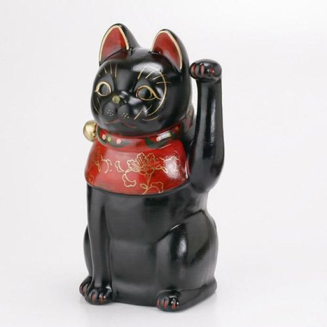 日式陶瓷古色猫擺設(黒色) (日本製)