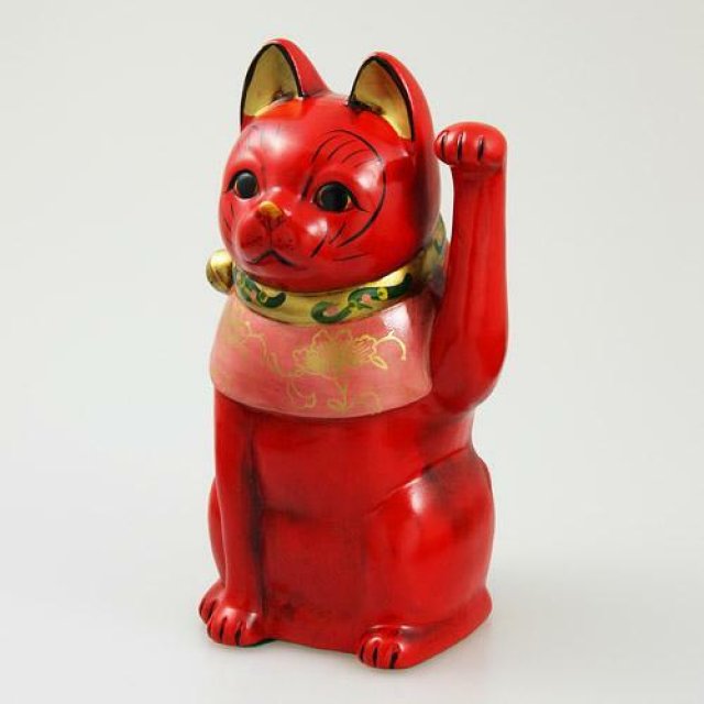 日式陶瓷古色猫擺設(赤色) (日本製)