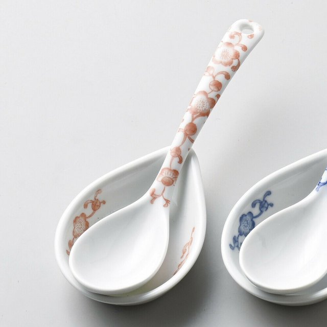 日本美濃燒花唐草瓦匙羹(紅) (日本製)