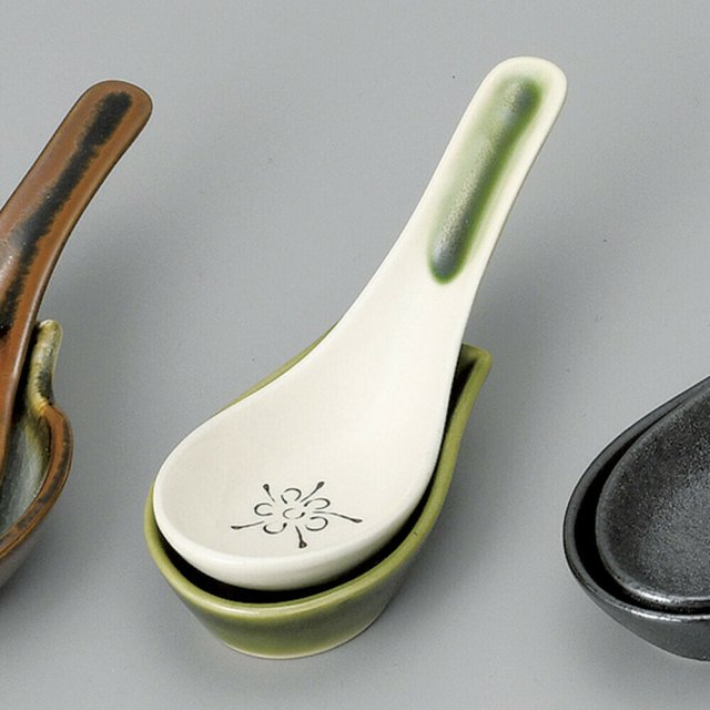日本美濃燒織部綠花瓦匙羹 (日本製)
