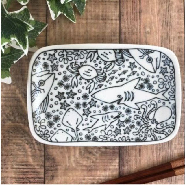 日本陶瓷海の仲間長瓦碟(海洋)16CM (日本製)