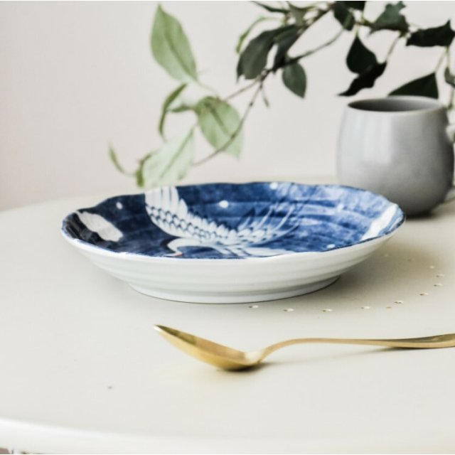 日本美濃燒藍鶴瓦碟22CM (日本製)
