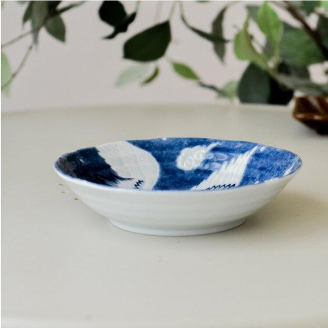 日本美濃燒藍鶴瓦碟14CM (日本製)