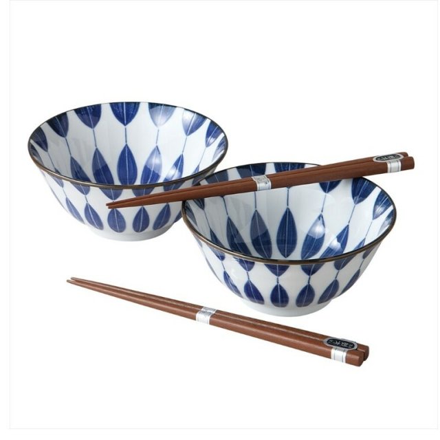 日本美濃燒陶瓷ひまわり藍染瓦碗連筷子套裝 (日本製)