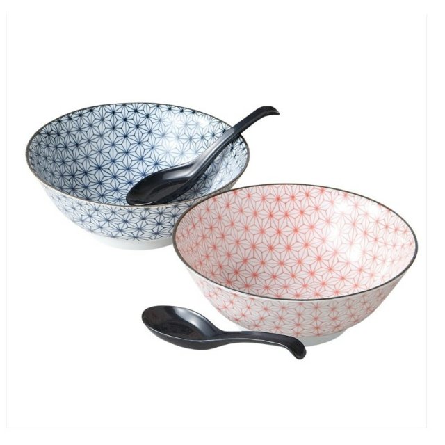 日本美濃燒陶瓷麻の葉麺鉢瓦碗連匙羹套裝 (日本製)