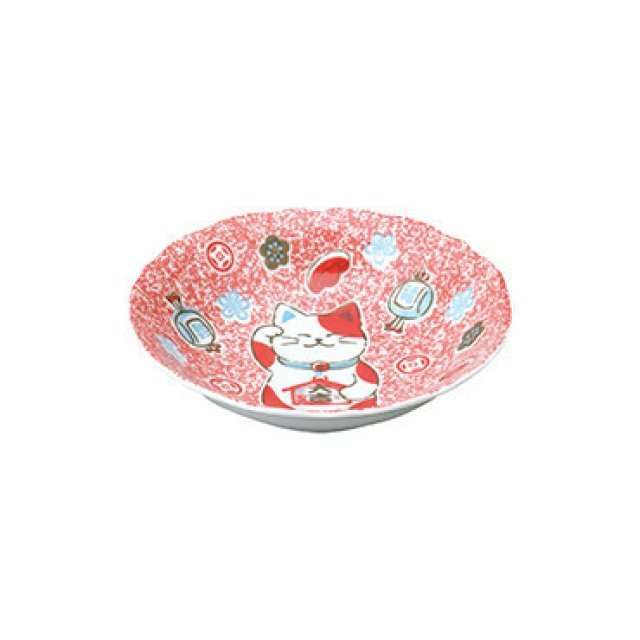 日本陶瓷招財貓瓦碟(紅色)16.5CM (日本製)