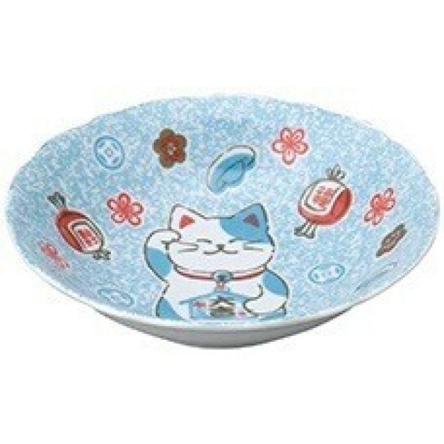 日本陶瓷招財貓瓦碟(藍色)19.5CM (日本製)
