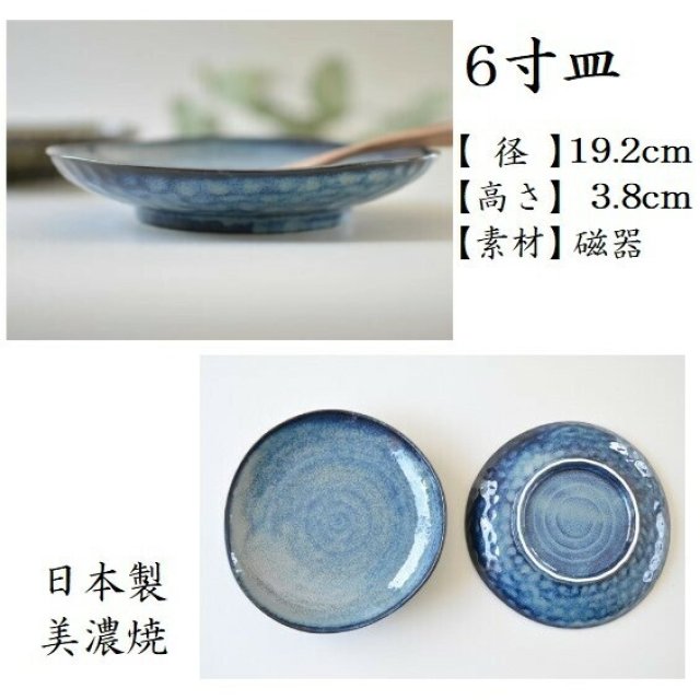 日本美濃燒窯変紺藍染瓦碟 19CM (日本製)