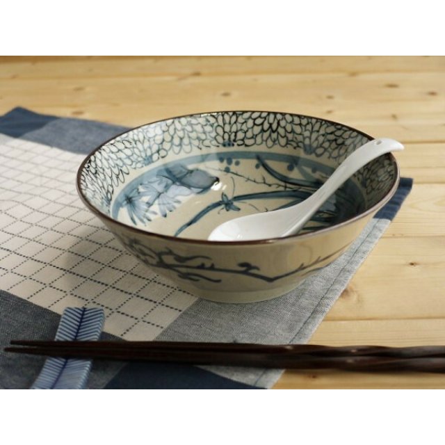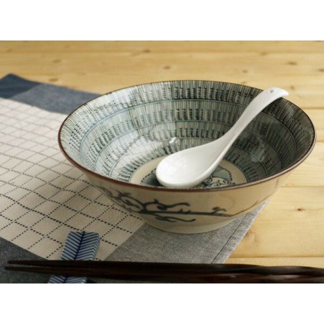 日式美濃燒染付ラーメン瓦碗19.5CM (日本製)