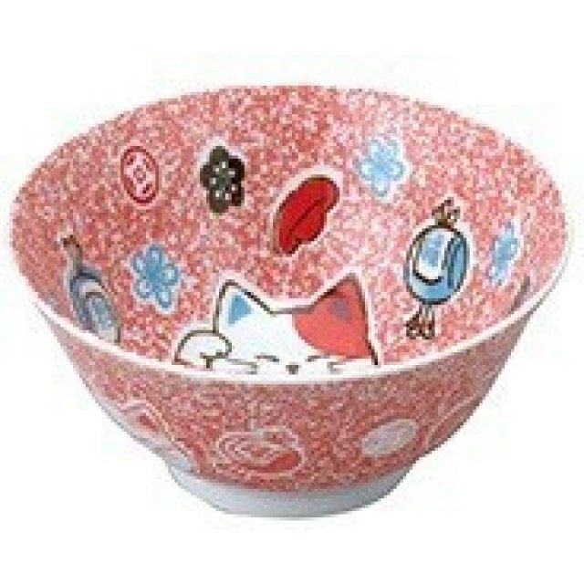 日本陶瓷招財貓瓦碗(紅色)15.2CM (日本製)