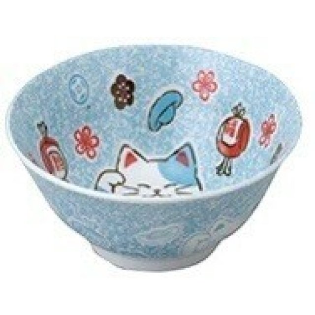 日本陶瓷招財貓瓦碗(藍色)15.2CM (日本製)