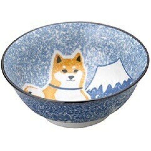 日本陶瓷富士山柴犬瓦碗(藍色)14.7CM (日本製)
