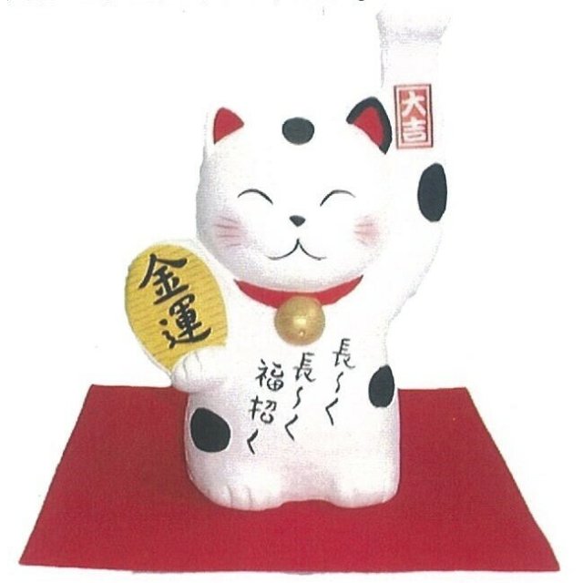 日式萬古燒陶瓷長福招財猫儲金箱 (白色) (日本製)