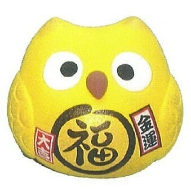 日式萬古燒迷你陶瓷風水招財貓頭鷹 (黃色) (日本製)