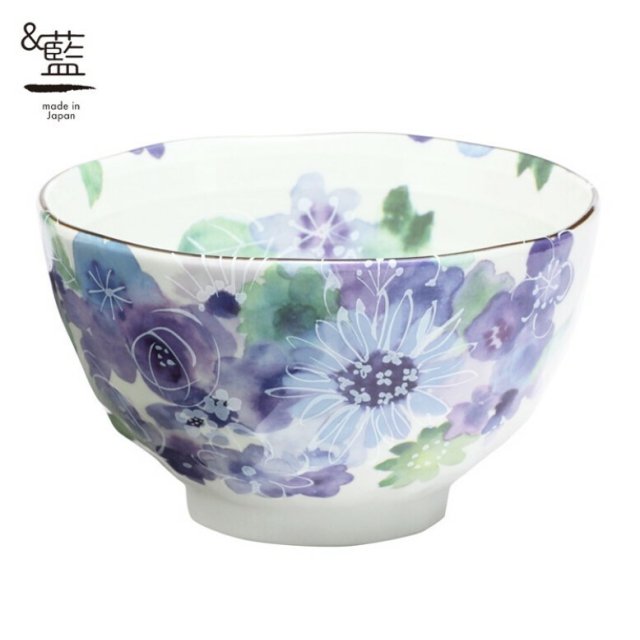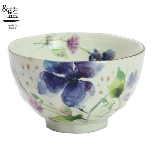 日本美濃燒花水彩瓦碗(青)11CM (日本製)