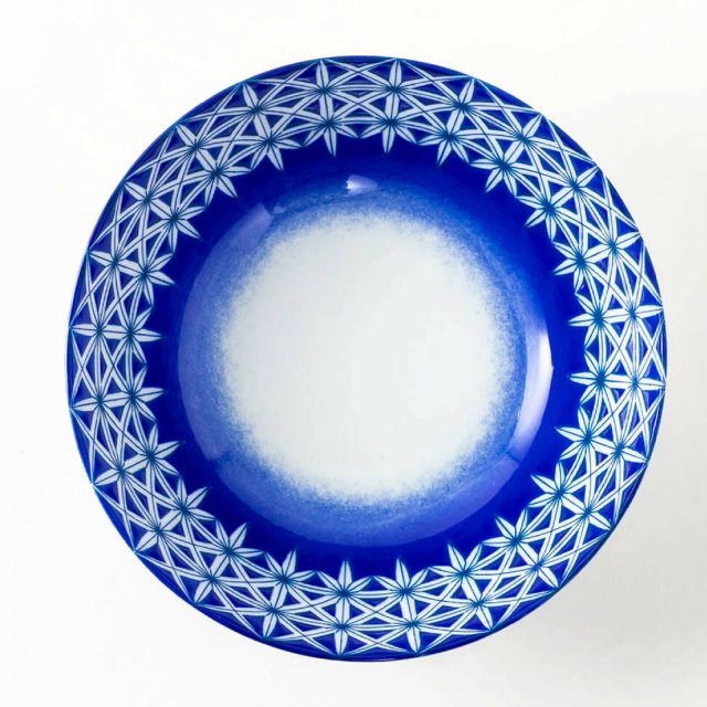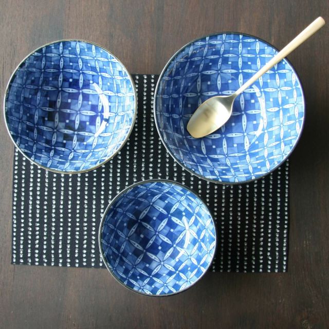 日本美濃燒陶切子矢来瓦碗(藍)17CM (日本製)