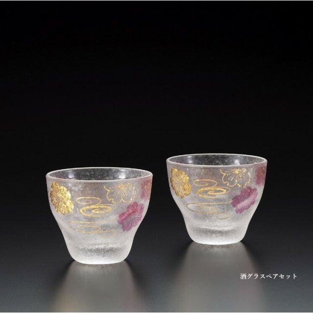 日本高級櫻花水紋玻璃清酒杯套裝(2枚入) (日本製)