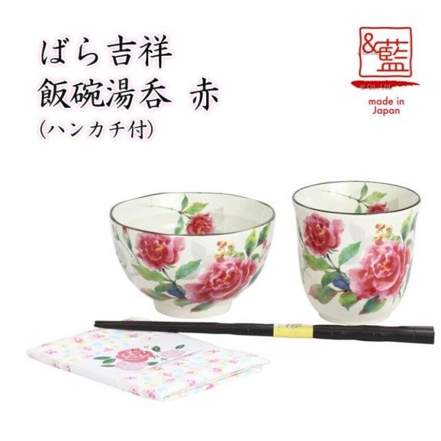 日本美濃燒ばら雅瓦杯瓦碗筷子禮盒套裝 (日本製)