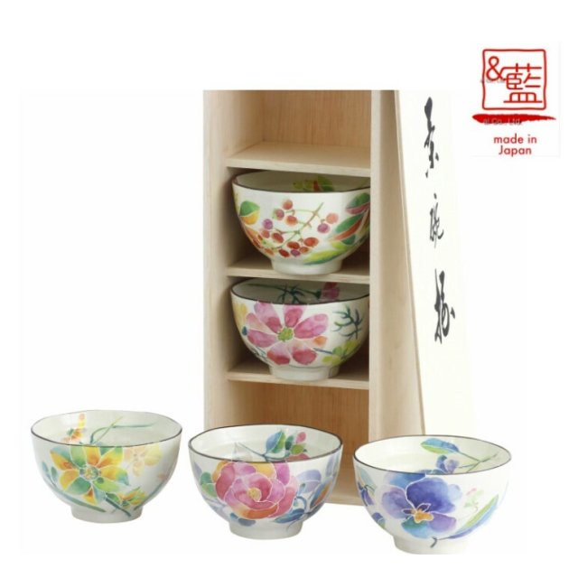 日本美濃燒花ことば瓦碗禮盒套裝 (5枚入) (日本製)