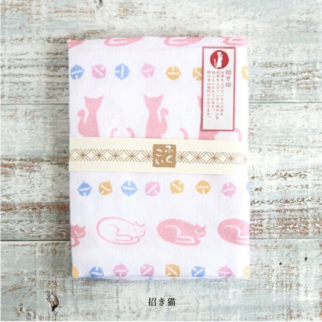 日式ふくこい二重紗巾(招財貓)32x89 (日本製)