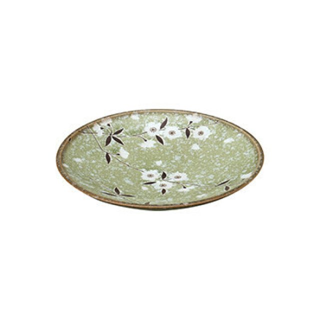 日本美濃燒櫻花圖案瓦碟(綠色) 25.6CM (日本製)