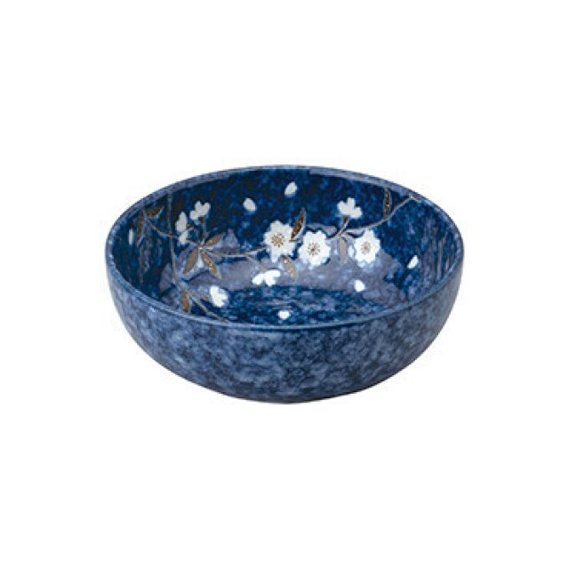 日本美濃燒櫻花圖案瓦碗(藍色) 17.3CM (日本製)