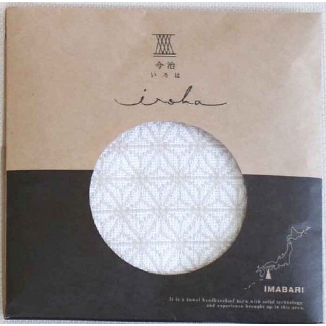 日本今治xIROHA 傳統圖案雙面小方巾 (淺白葉) 25x25 (日本製)