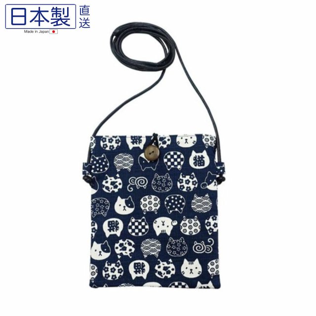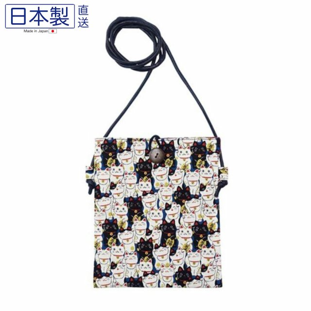 日式可愛貓貓斜肩袋 (招財貓) (藍色) (日本製)