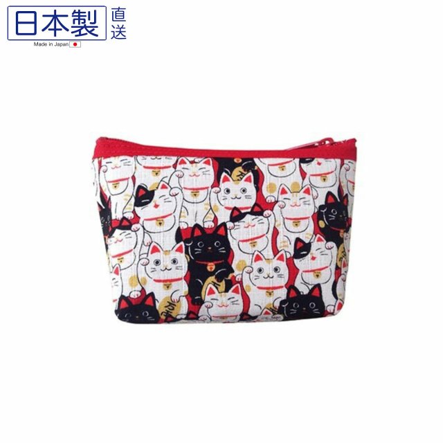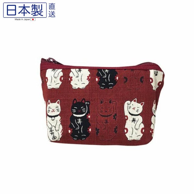 日式可愛貓貓拉鏈袋 (招財貓) (紅色) (日本製)