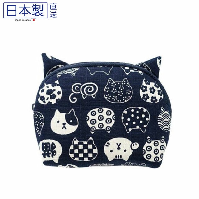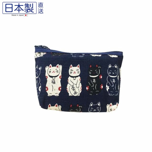 日式可愛貓貓拉鏈袋 (招財貓) (藍色) (日本製)