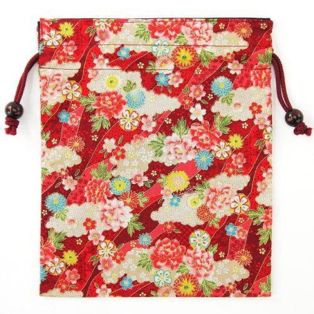 日式雲海に牡丹索繩袋 (紅色) (日本製)