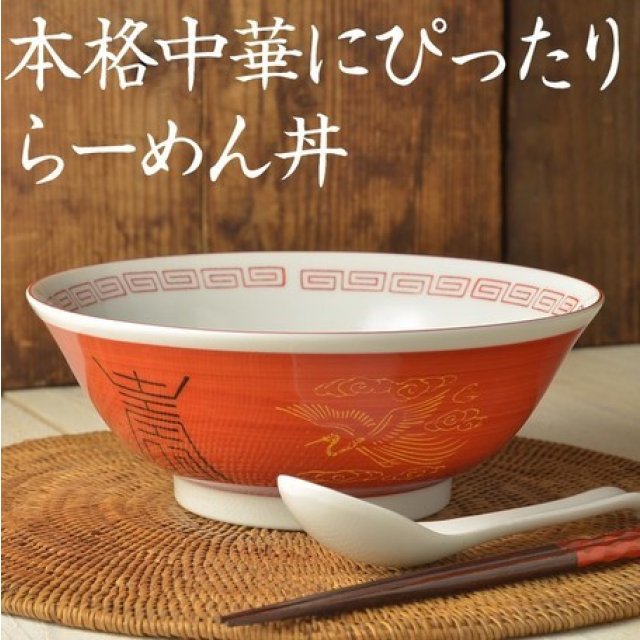 日本美濃燒中華拉麵碗 (橙紅) 19.5CM (日本製)