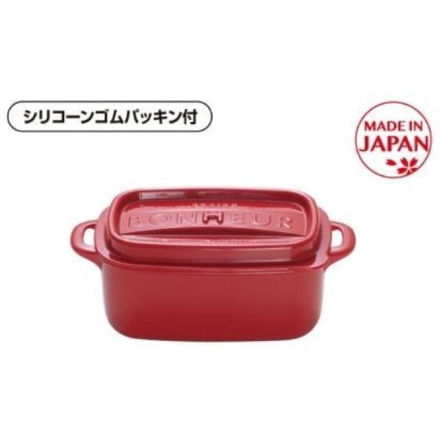 日本Bonheur耐熱長方食品罐(大) (紅色) (日本製)