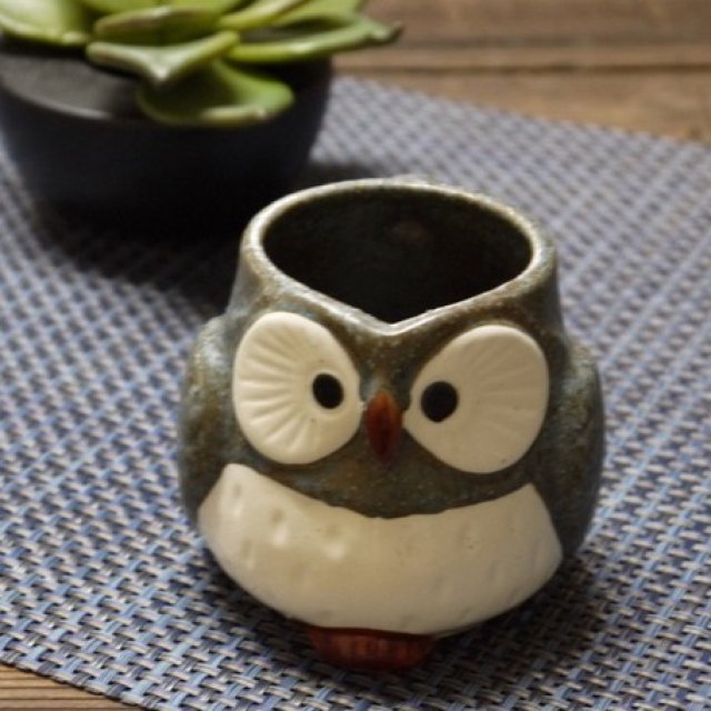 日式美濃燒貓頭鷹瓦杯 (灰色) (日本製)