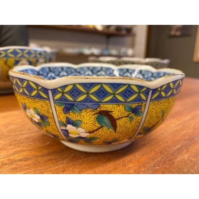 日本美濃燒黃花鳥瓦碗 12CM (日本製)