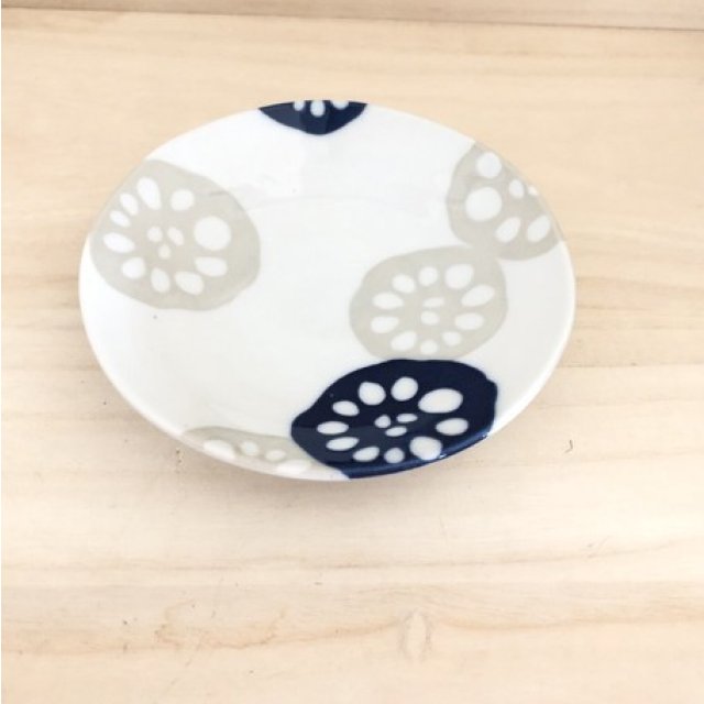 日式陶瓷蓮藕瓦碟 (藍色) 12CM (日本製)