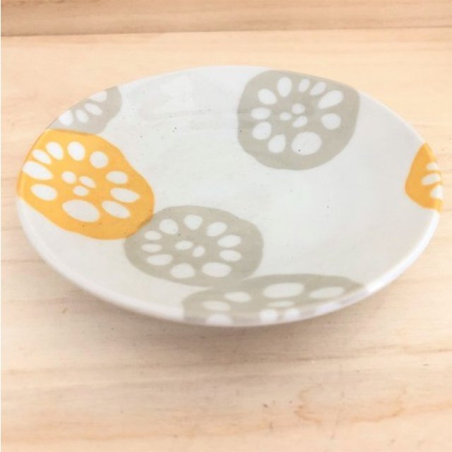 日式陶瓷蓮藕瓦碟 (黃色) 12CM (日本製)