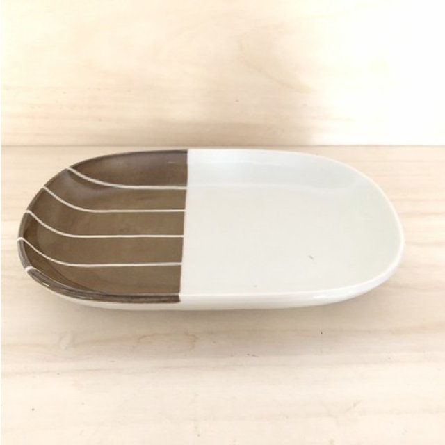 日式陶瓷橢圓形瓦碟 (啡色) 19CM (日本製)