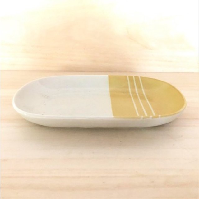 日式陶瓷橢圓形瓦碟 (黃色) 19CM (日本製)