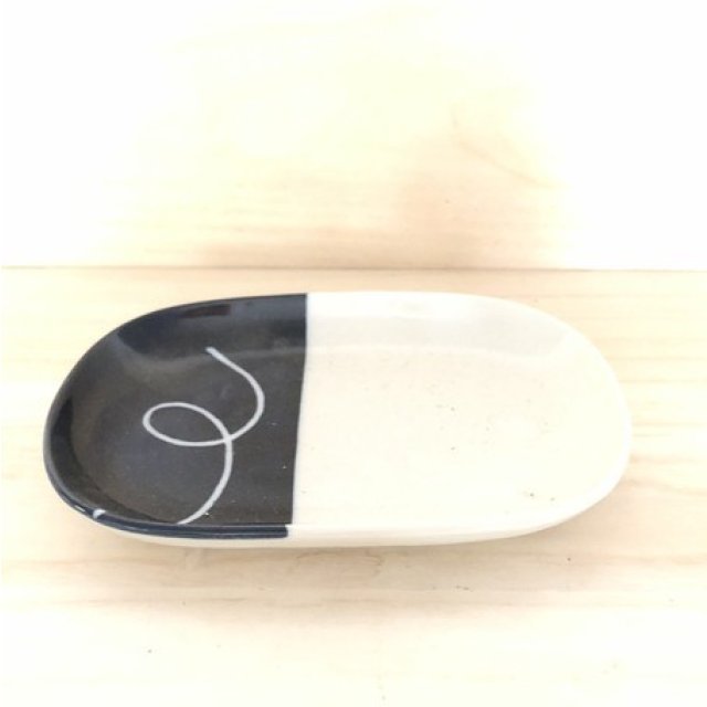 日式陶瓷橢圓形瓦碟 (藍色) 19CM (日本製)