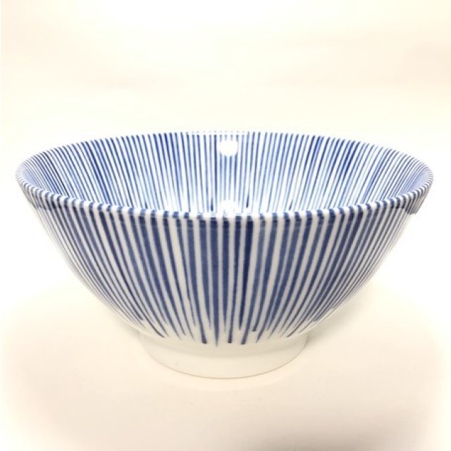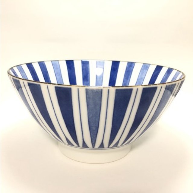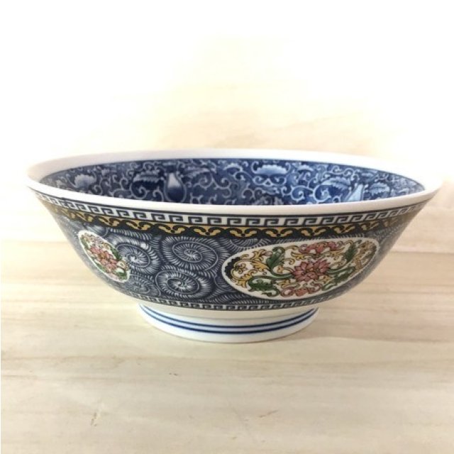日式陶瓷唐草花拉麵碗 (青色) 19CM (日本製)
